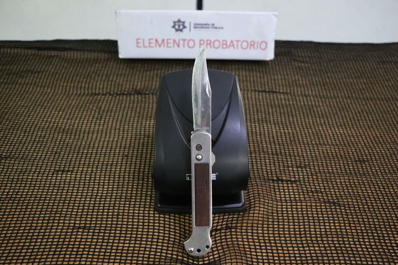Motivo por el cual, comenzó la búsqueda del sujeto, localizándolo metros adelante, sin embargo, al verse descubierto, el hombre sacó una navaja con la que intentó lesionar a los oficiales, por lo que implementaron las medidas precautorias para realizar su aseguramiento.